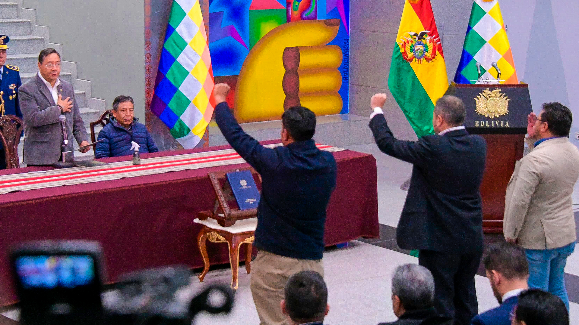 En la ceremonia, Alejandro Gallardo Baldivieso fue posesionado como Ministro de Hidrocarburos y Energías; Erlan Julio Rodríguez La Fuente asumió como Ministro de Trabajo, Empleo y Previsión Social; y Juan Yamil Flores Lasso fue nombrado Ministro de Desarrollo Rural y Tierras.