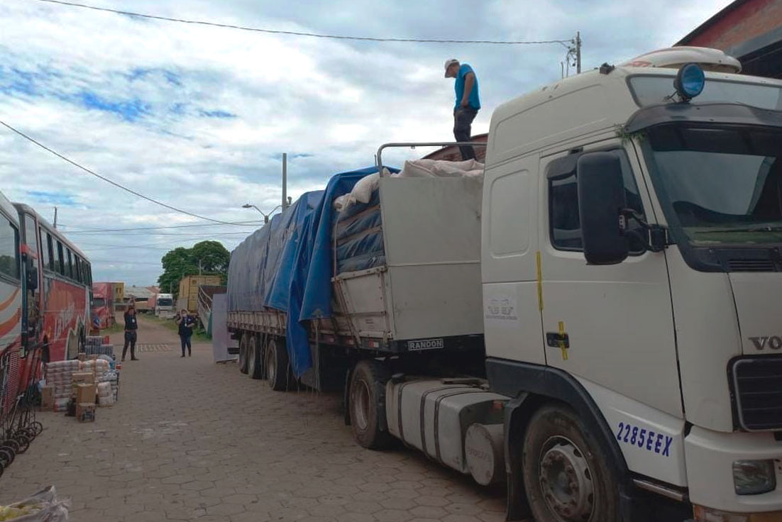 “Estos buses no cuentan con la tarjeta de operaciones asignada por la empresa de transporte a la que pertenecen, por tanto, los conductores al verse descubiertos entregaron de forma voluntaria las llaves del motorizado. En total transportaban 18 toneladas de lavandina, aceite, galletas, productos de limpieza y harina”, detalló Mollinedo.