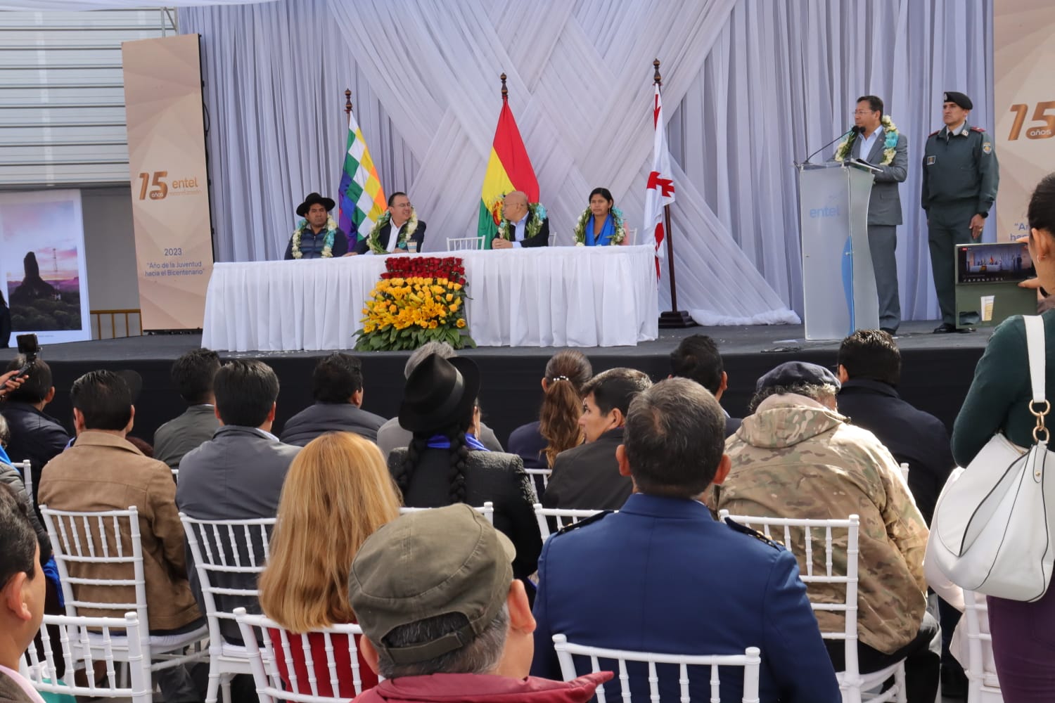 El presidente Luis Arce celebró este martes los 15 años de la nacionalizada Empresa Nacional de Telecomunicaciones (Entel) y resaltó su rol fundamental en el desarrollo del país, para garantizar bonos sociales y el derecho a las telecomunicación de los bolivianos.