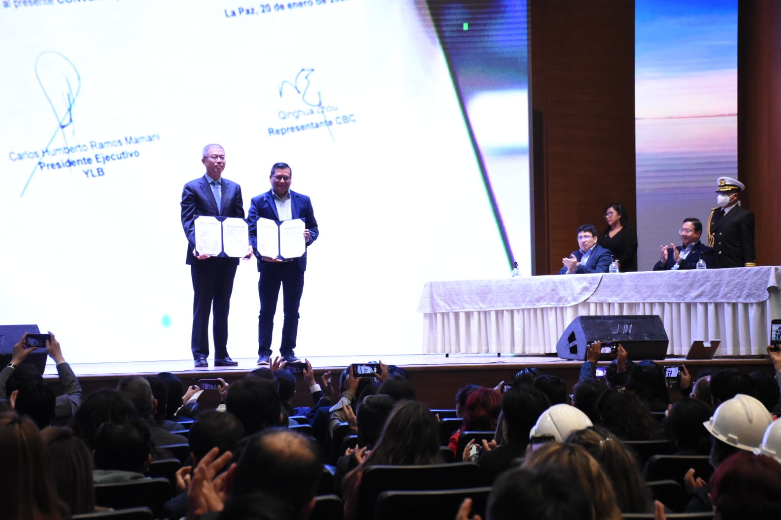 Según datos del Ministerio de Hidrocarburos y Energías (MHE), el documento fue suscrito por el presidente de Yacimientos de Litio Bolivianos (YLB), Carlos Ramos, y el representante de CBC, Qinghua Zhou, en un acto especial en la Casa Grande del Pueblo, sede de la Presidencia del Estado Plurinacional.