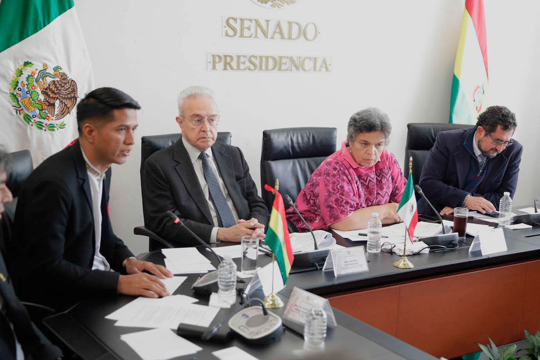 Con los presidentes de las Comisiones de Relaciones Exteriores América Latina-el Caribe y de Relaciones Exteriores de México, senadores Beatriz Paredez Rangel y Héctor Vasconcelos, respectivamente, conversó sobre la lucha de los pueblos indígena originario campesinos en la construcción y consolidación del Estado Plurinacional de Bolivia.