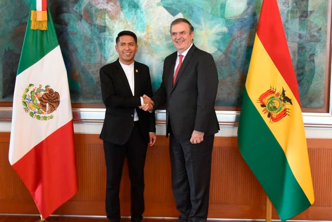 “Tuve el agrado de saludar al presidente del Senado de Bolivia, Andrónico Rodríguez, quien está de visita en nuestro país. México-Bolivia países hermanos”, escribió Ebrard en sus redes sociales.