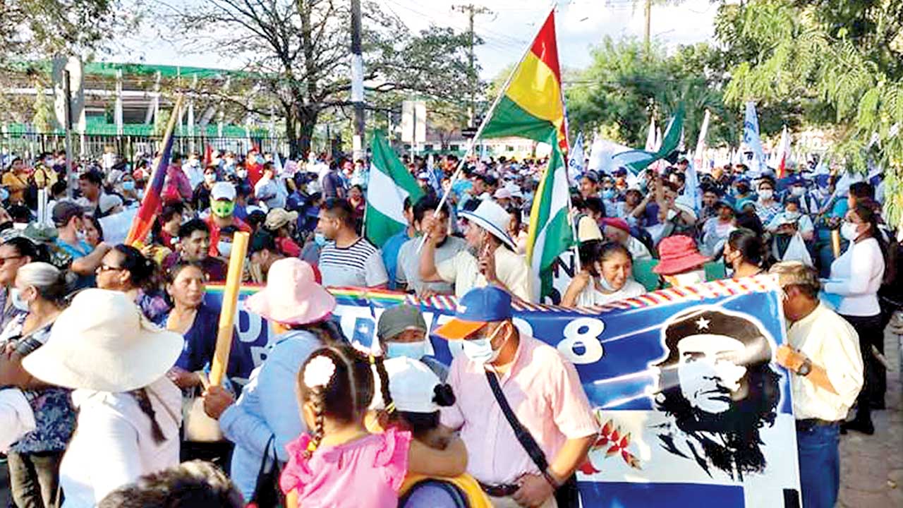 “¡Revocatorio para Camacho!, ¡Santa Cruz se respeta! ¡Hay que democratizar al Comité Cívico! ¡Fuera la derecha imperialista!”, son algunas de las consignas de la masiva movilización de los sectores sociales cruceños, según un reporte de Bolivia TV.