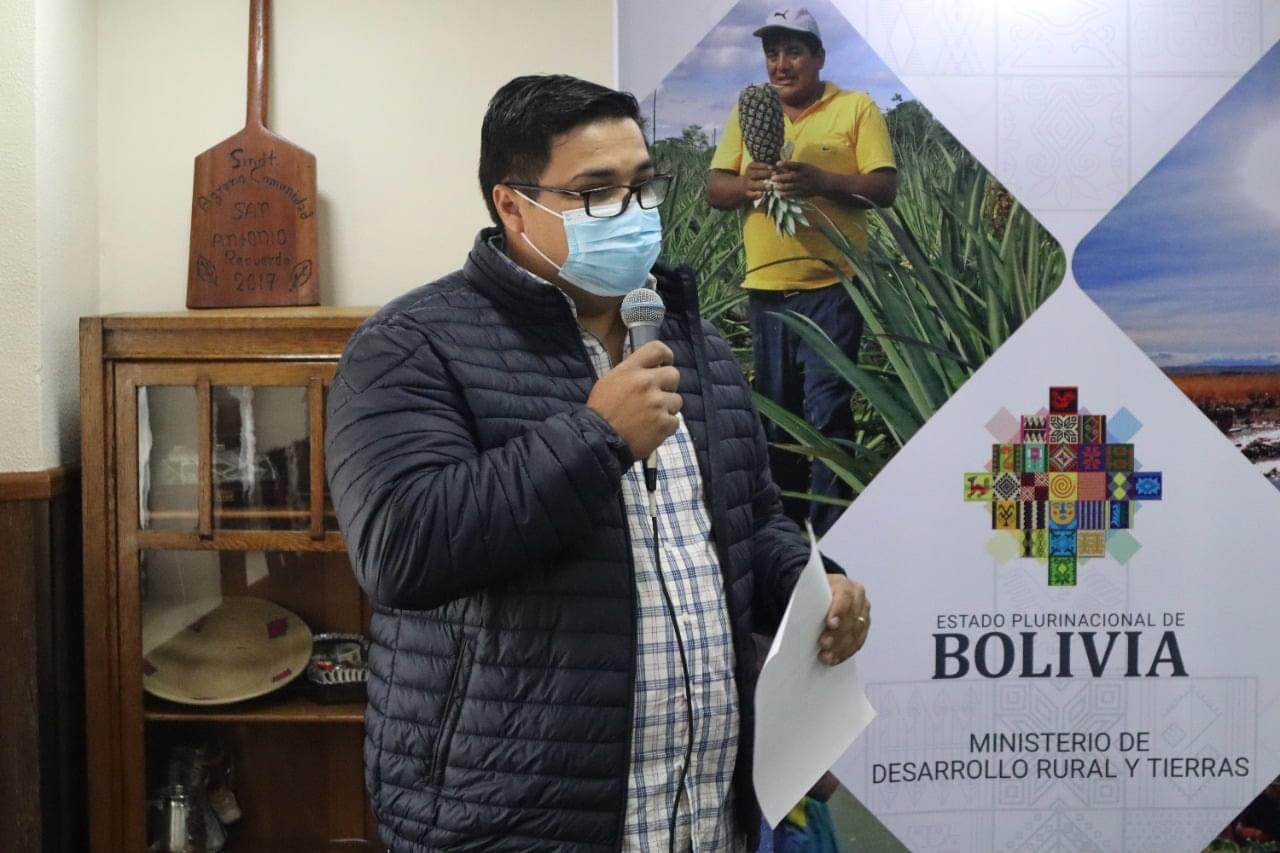 Tras tomar juramento, el nuevo director agradeció la confianza por el cargo al presidente del Estado Luis Arce Catacora y al titular del Ministerio de Desarrollo Rural y Tierras (MDRyT).