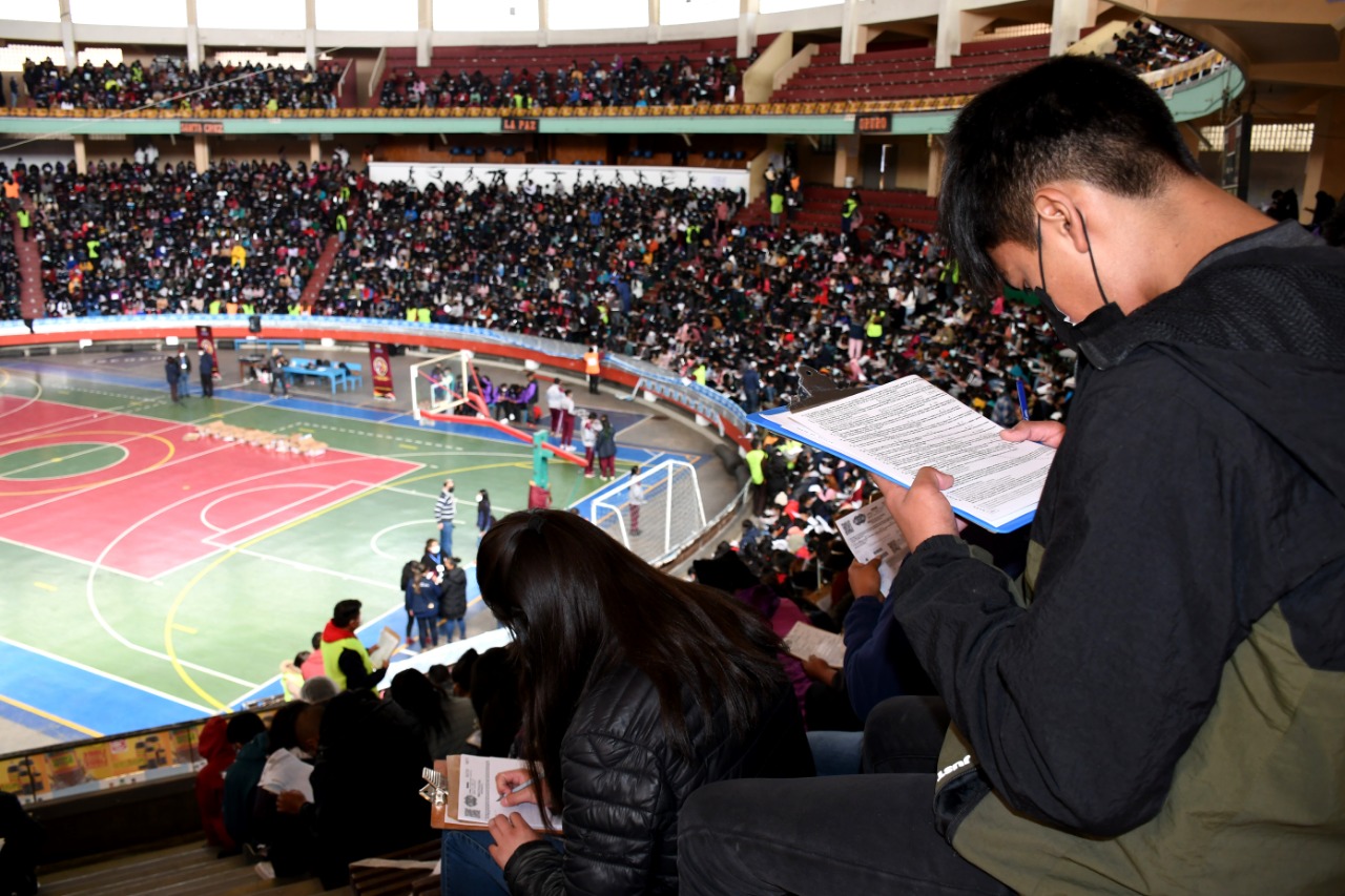 De acuerdo con un reporte del canal estatal Bolivia Tv, el examen de admisión para ingresar a las escuelas superiores de formación de maestros, en la ciudad de La Paz, se lleva a cabo en el coliseo cerrado “Julio Boreli”.
