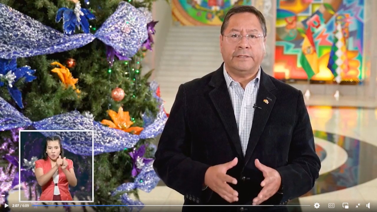 En la noche buena, víspera de Navidad, el presidente Luis Arce Catacora envió este sábado un mensaje de paz, unidad y esperanza a las familias bolivianas para continuar en la senda de la recuperación de la economía nacional, con justicia social, dignidad y sin violencia, racismo ni discriminación.