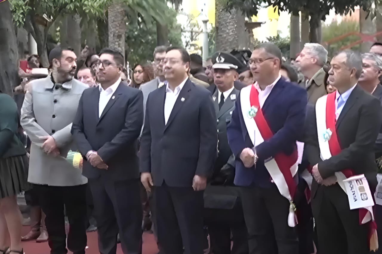 “Llegamos a Tarija en su mes aniversario para realizar el izamiento de nuestras banderas en el marco de las actividades programadas por el Bicentenario de nuestra Patria”, publicó el presidente Arce en sus redes sociales.