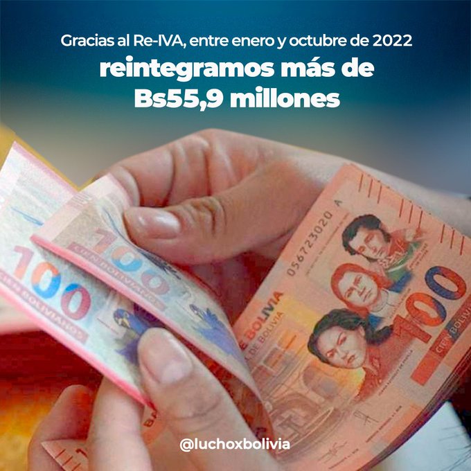 El presidente Luis Arce destacó este domingo los resultados de las políticas estatales para reactivar la economía como el reintegró de Bs 55,9 del Re-IVA a cientos de contribuyentes.