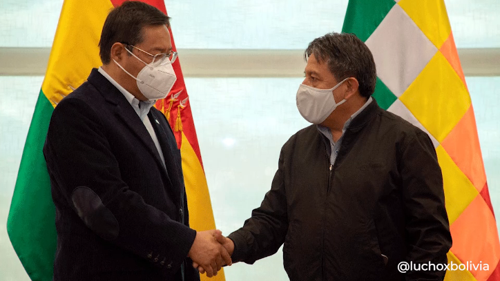 “Entregamos el Bastón de Mando a nuestro jilata @LaramaDavid, Vicepresidente del Estado Plurinacional de #Bolivia, antes de partir a #Cuba, donde cumpliremos una visita oficial y participaremos en la XX Cumbre del @ALBATCP. #ALBAUnida (sic)”, escribió en su cuenta de Twitter.