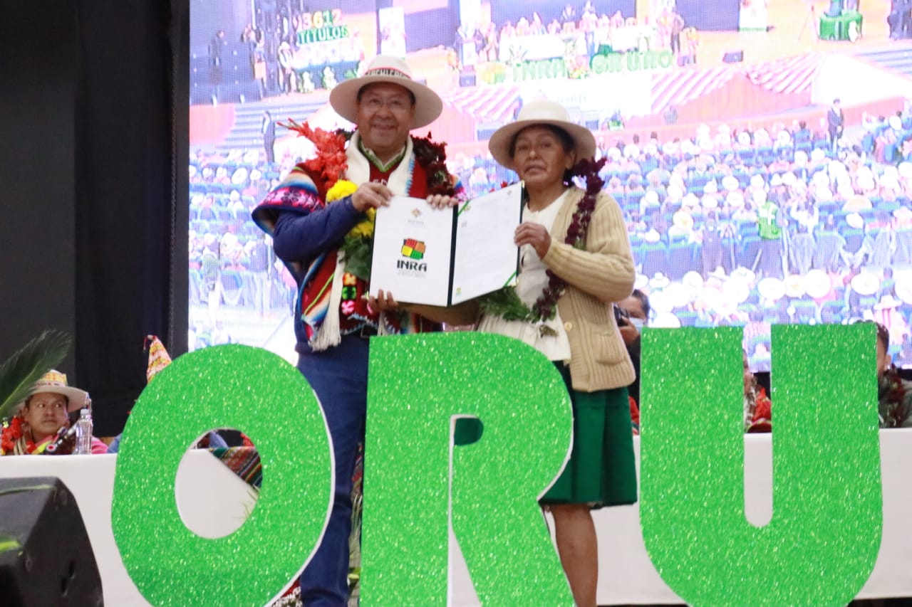 El presidente del Estado, Luis Arce, entregó este viernes 3.612 títulos ejecutoriales en el departamento de Oruro y destacó la lucha de los pueblos originarios por la tenencia de tierra propia para la producción.
