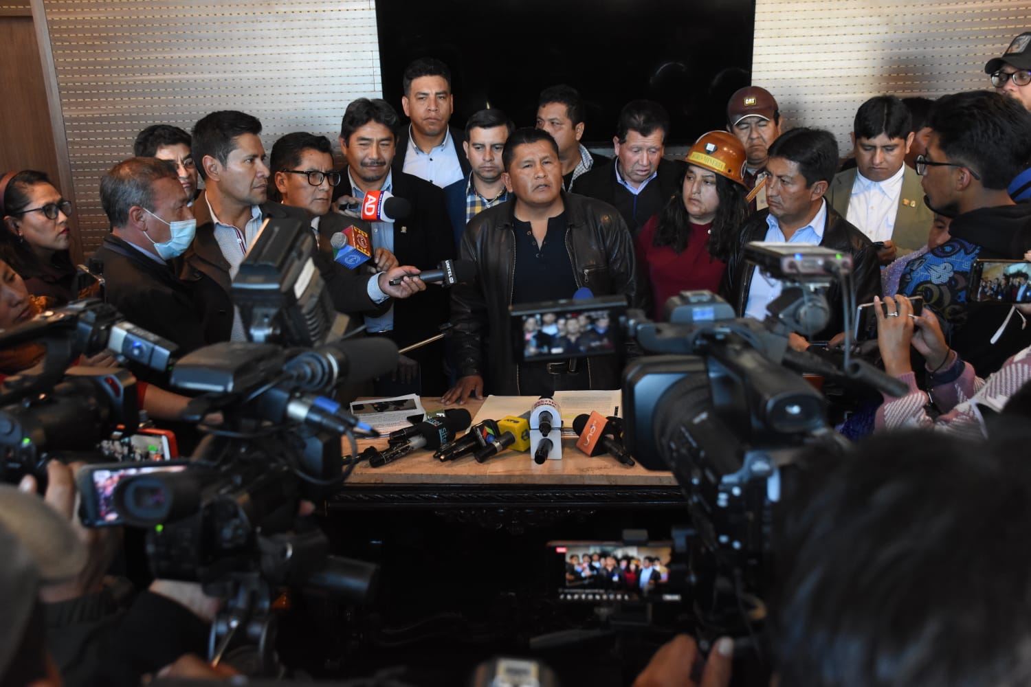 “Han olvidado las masacres, se han aliado con Camacho, con nuestros verdugos, con esa gente que nos ha reprimido, que nos ha perseguido, que ha masacrado a nuestros hermanos campesinos, transportistas y gremialistas, eso es lo que han olvidado. Se han aliado con Creemos, con Comunidad Ciudadana”, denunció en conferencia de prensa rodeado de la bancada masista.