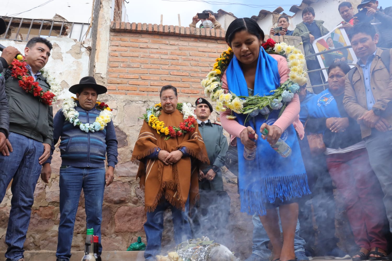 Arce dijo que la obra, de Bs 4,6 millones, “dignificará” a los campesinos chuquisaqueños y será un reconocimiento al trabajo, la valentía y el compromiso de la Futpoch y las Bartolinas por la democracia.