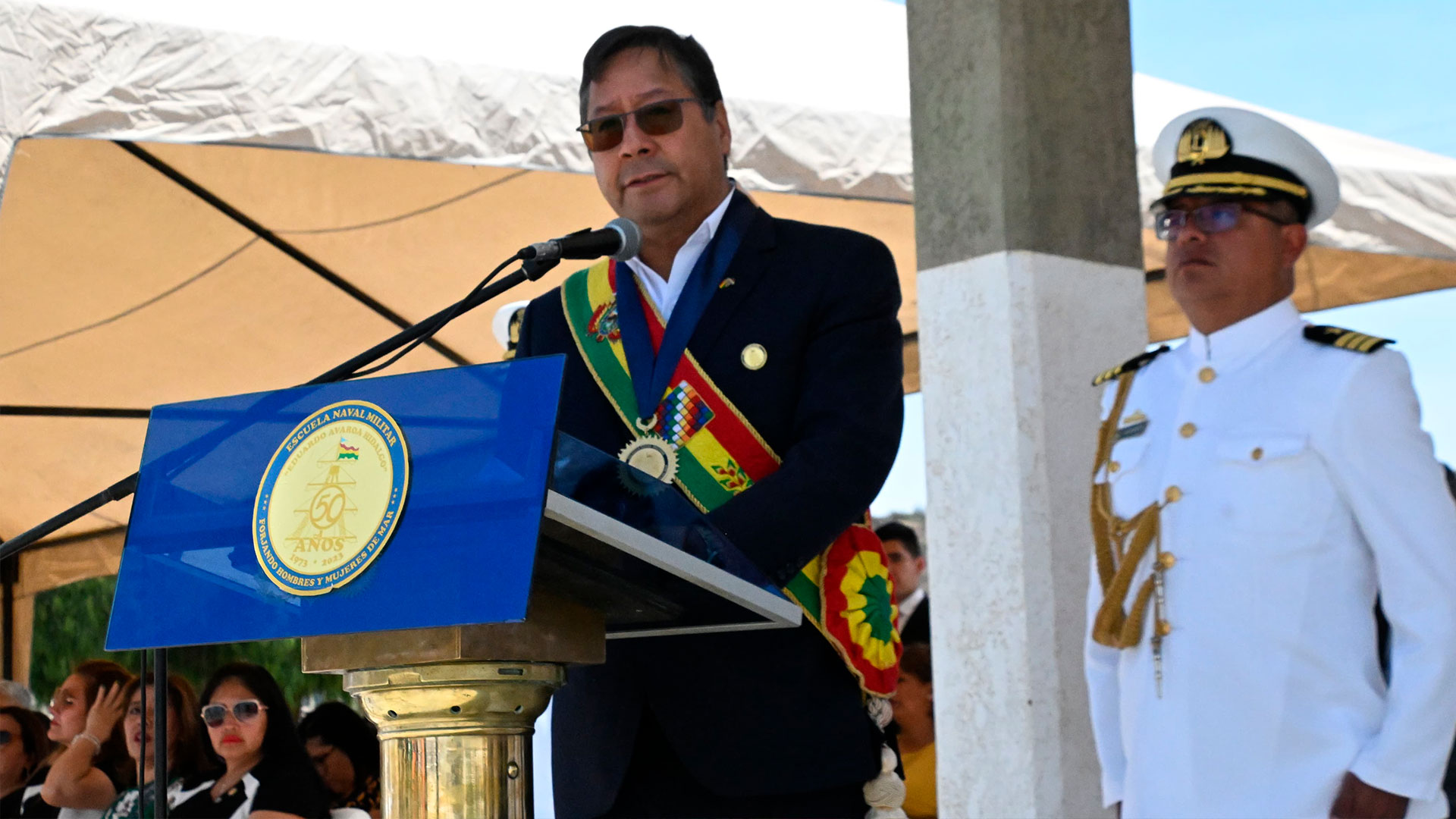 Cochabamba, 13 de octubre de 2023.- Al conmemorar los 50 años de fundación de la Escuela Naval Militar «Eduardo Avaroa Hidalgo», en Carcaje – Cochabamba, el presidente Luis Arce llamó a la unidad del pueblo boliviano para defender la patria, desterrar el odio, racismo, discriminación y los apetitos de poder “que envenenan el alma nacional”.