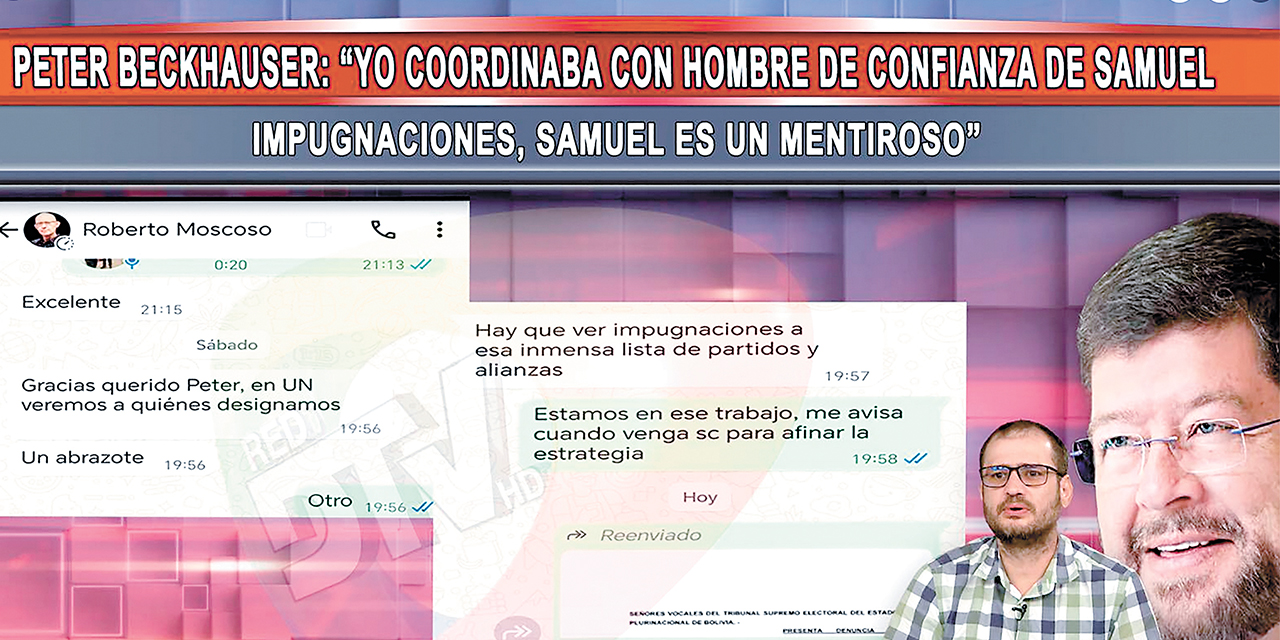 Peter Beckhauser, excandidato de la Alianza Unidad, denunció que junto a Roberto Moscoso, asesor de Samuel Doria Medina, planearon una estrategia de impugnaciones para excluir partidos, principalmente de izquierda, de las elecciones.