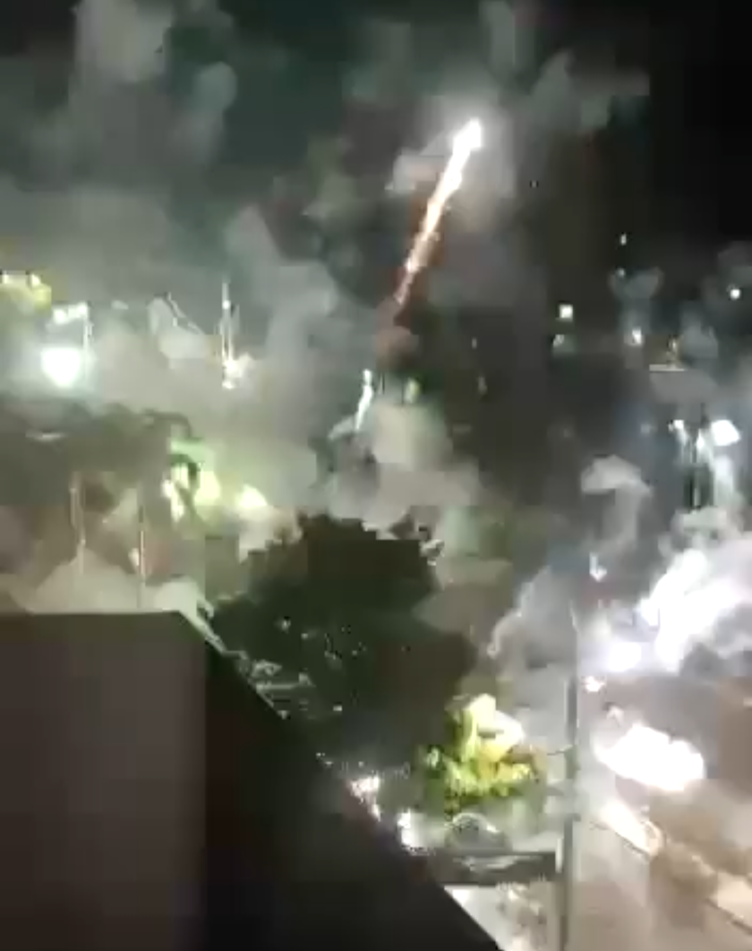 «Cerca de las 21.00 horas, cuando la marcha de las señoras, que todo el día han estado realizando el derecho que la CPE les permite, la protesta, el reclamo correspondiente, lo estaban haciendo en el frontis del Comando Departamental, los manifestantes que estaban detrás de la barricada empezaron a lanzar los fuegos artificiales de gran impacto», informó el subcomandante departamental de la Policía, Cnl. Edson Claure.