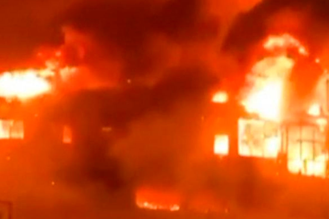 Incendian la planta baja y para que crezca en proporciones se ve cómo introducen llantas y otros materiales inflamables. En poco tiempo el fuego y la humareda cubrían el edificio.