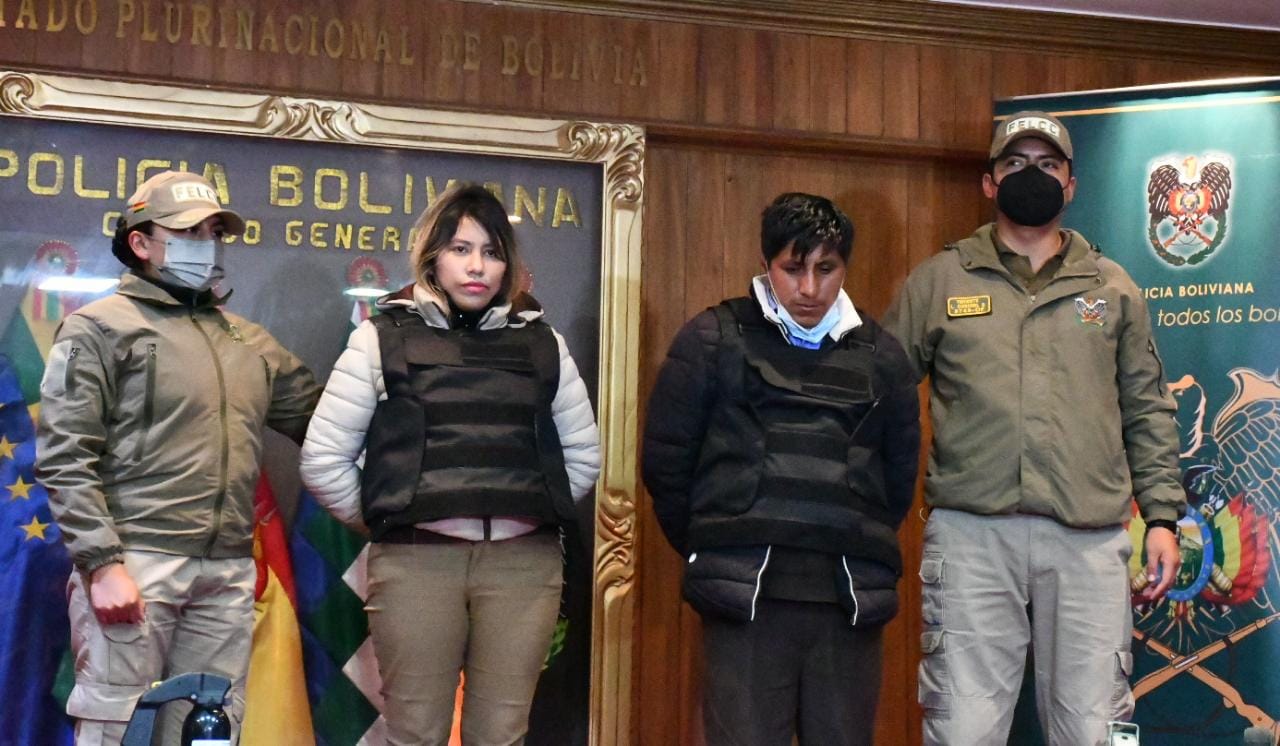 El ministro de Gobierno, Eduardo Del Castillo, presentó a la señora Gabriela Tovala Calle, secretaria del Juzgado 2do de la Niñez y Adolescencia de La Paz, y al abogado Salustino Poma Condori, por pedirle dinero para acelerar los procesos judiciales de una mujer que solicitaba la custodia de sus dos hijas.