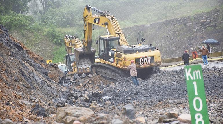 Deslizamientos de tierra y lodo afectaron al menos cinco puntos de la carretera, en los kilómetros 105, 106, 108, 109 y 110. EL punto más crítica está en el kilómetro 105, donde prácticamente un cerro entero se desplomó.