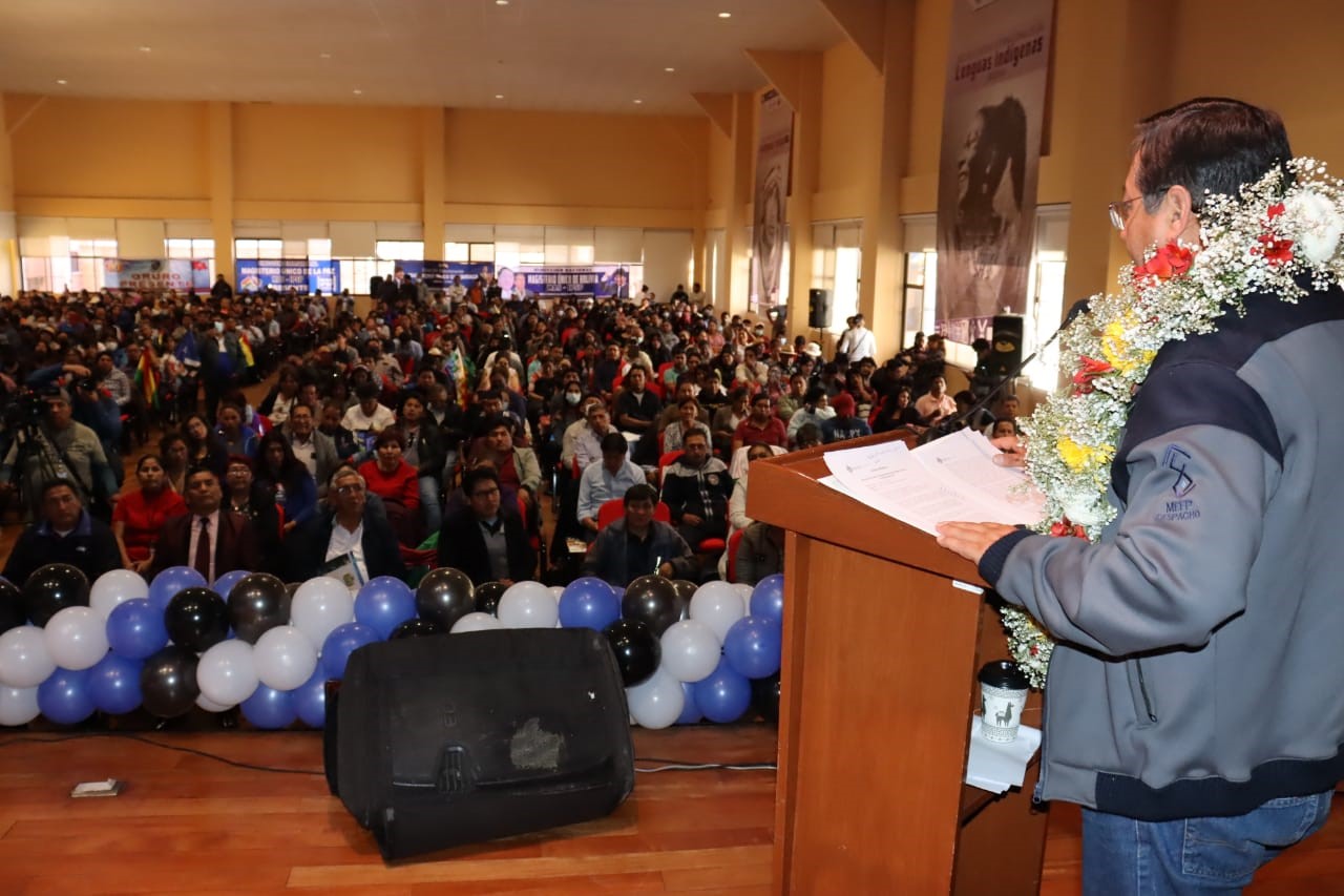 El presidente Luis Arce resaltó que el nuevo currículo educativo busca la calidad de la educación en Bolivia, en la inauguración del ampliado extraordinario del Magisterio Único de Bolivia MAS IPSP.
