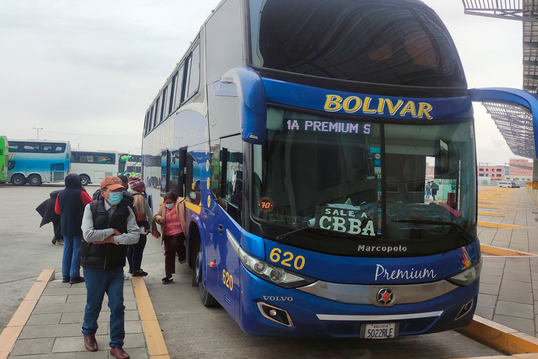Las salidas de buses desde las terminales de La Paz y El Alto hacia Santa Cruz fueron suspendidas hasta nuevo aviso a causa de los bloqueos en carreteras, sin embargo, los viajes a los demás departamentos del país son normales.