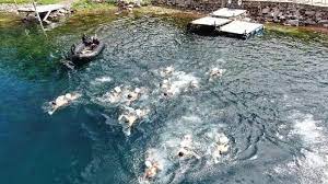 Los alféreces que realizan el IV curso de Buceo Militar, del Centro de Instrucción de Buceo en Altura (CIBA), pusieron a prueba su resistencia física y mental y se sumergieron en las gélidas aguas del lago Titicaca para cruzar nadando el Estrecho de Tiquina.