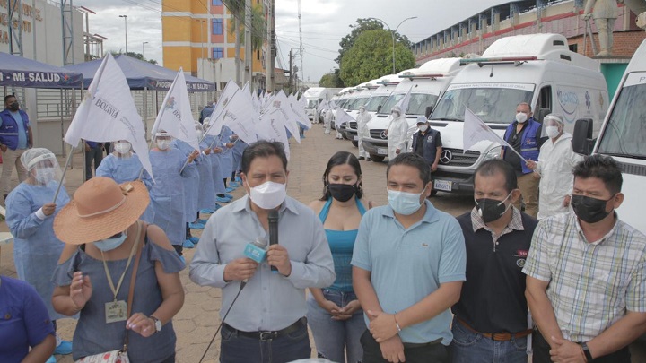 El Gobierno nacional desplegó este domingo 25 equipos de brigadas móviles compuesto por más de 50 médicos que apoyados con ambulancias recorrerán zonas y barrios de la ciudad de Cobija, Pando. El objetivo es realizar pruebas diagnósticas, tratamientos y vacunación en busca de aplacar cuarta ola del COVID-19.